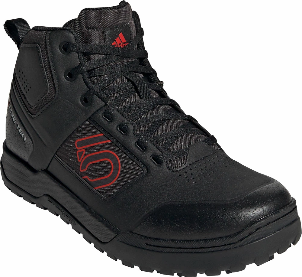 The adidas Impact Pro Mid is designed for gravity-fuelled riding. It features a mid-height cuff with D30® ankle padding and an impact-resistant PORON® foam toe box for aggressive riding. The S1 Dotty outsole maintains a locked-in feel on the pedals. The lightweight synthetic upper is quick to dry when wet.
