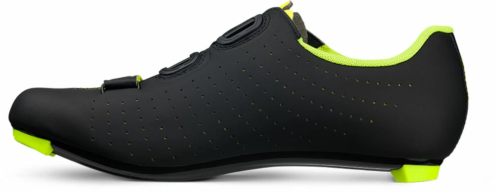 The closure is fast and secure, powered by a micro-adjustable BOA IP1 dial and a Velcro strap for a fine tune fit of the forefoot area. The R5 Nylon composite outsole is supple and comfortable even in the long haul but without compromising pedalling efficiency.