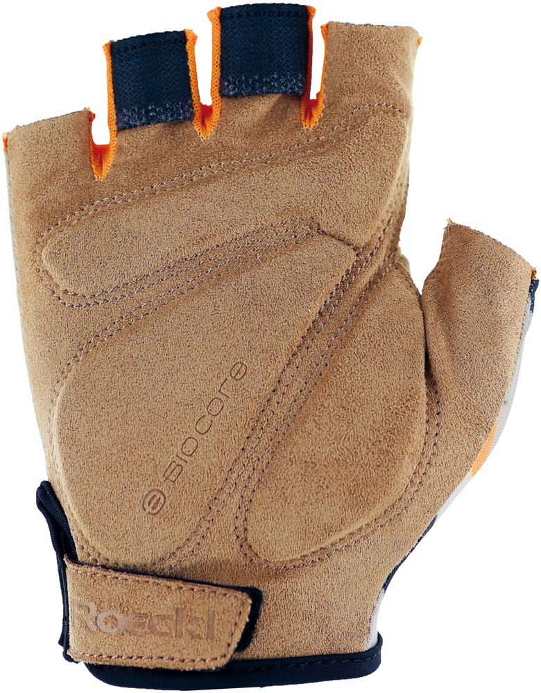 La pièce maîtresse de la paume est le rembourrage BIOcore, très performant, respirant et léger, fabriqué à partir de mousse contenant 45 % de matières premières végétales et donc renouvelables. Ce rembourrage écologique, exclusif à ROECKL SPORTS pour les gants de cyclisme, réunit en un seul dénominateur l’amortissement, le confort, la tactilité et la durabilité. Et comme le rembourrage breveté sans couture COMFORT-INNOVATION est également présent, le creux du pouce, qui est particulièrement sollicité pendant le cyclisme, est soutenu de manière optimale. Et à la fin du tour de vélo, il vous suffit de retirer l’IBIO de votre main à l’aide du système pratique PULL OFF SYSTEM – également à forte teneur en matières recyclées. Chic : l’aspect estival de la ligne de la feuille sur le revers de la main.