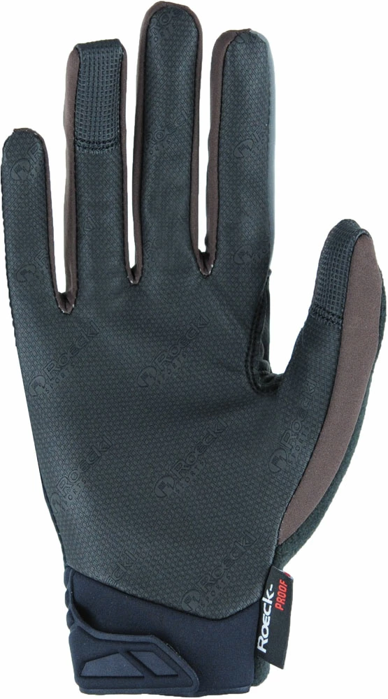 The patented seamless COMFORT-INNOVATION by ROECKL SPORTS, which cushions the sensitive crook of the thumb, and the neoprene cuff construction without binding support the already very high wearing comfort of the MAASTRICHT. And with the soft fleece thumb, you can comfortably wipe your face during a lot of action. Practical, especially for business bikers: ring finger and thumb are TOUCHSCREEN COMPATIBLE for operating the smartphone with gloves. An eye-catcher are the stylish, reflective design elements and generous reflective inserts on the index finger and edge of the hand